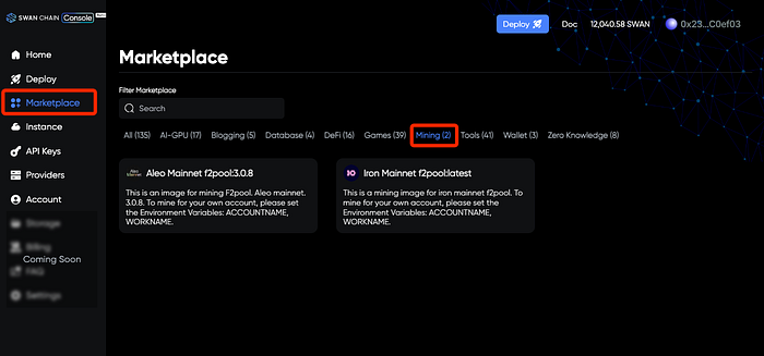 The Swan Chain marketplace provides access to various Blockchain GPU tasks pools. To begin: