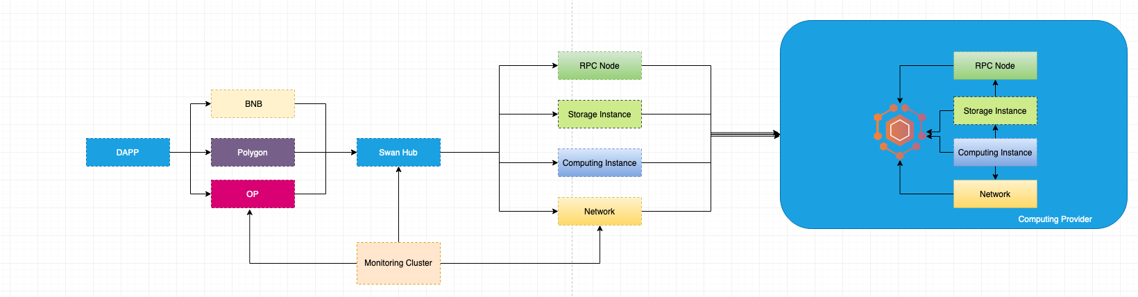 Swan's Computing Layer is a crucial component of its decentralized cloud computing ecosystem. It's designed to facilitate the execution of computing tasks across a network of providers, ensuring efficiency, reliability, and security. The Computing Layer supports diverse workloads including AI model training, ZK proof generation, and — with the introduction of Swan 2.0real-time AI inference through the Inference Marketplace.