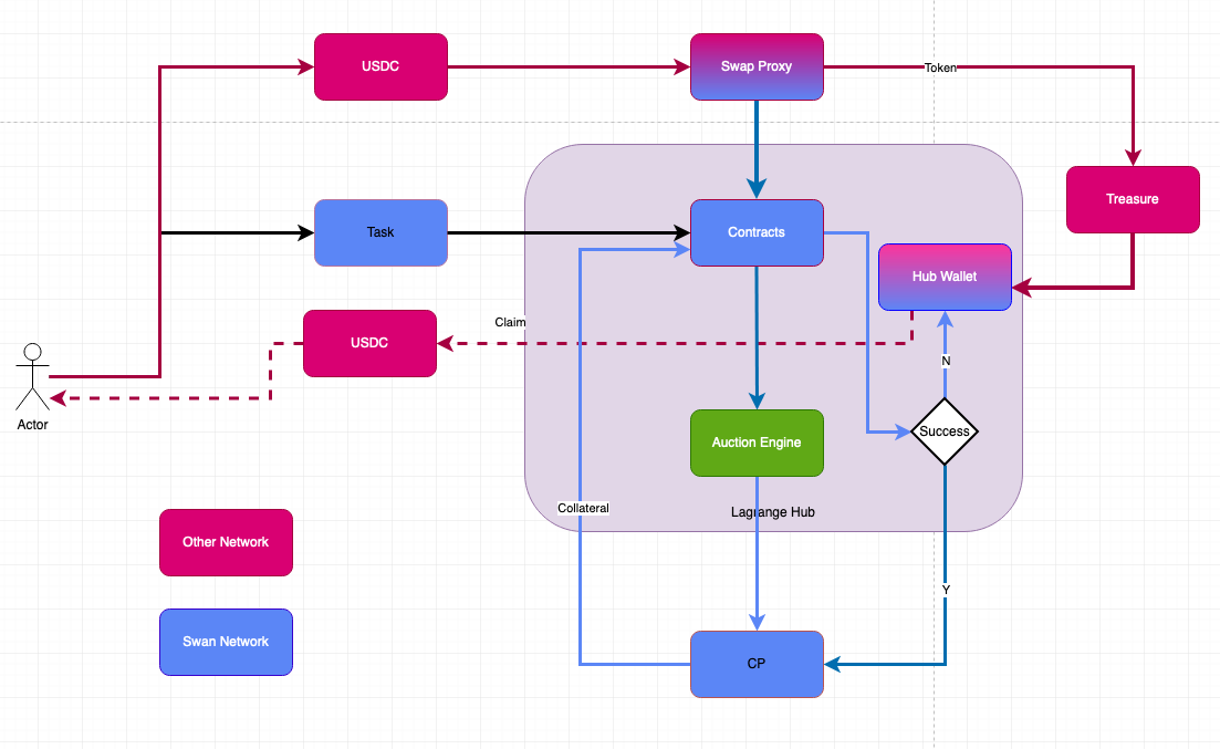 CPs execute the tasks and are rewarded with Swan tokens upon successful completion. The reward mechanism may follow a Proof-of-Work (PoW) auction style, where CPs have a chance to win a ticket if they complete the job.